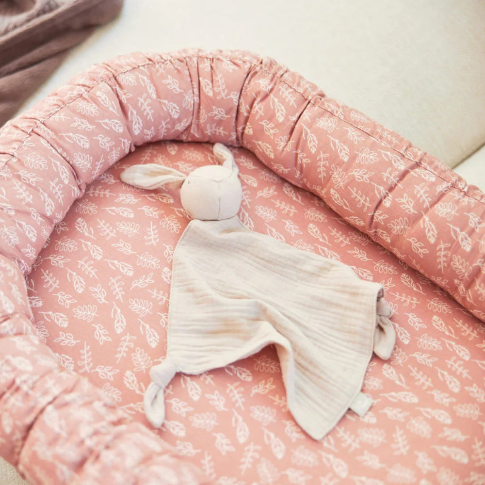 Šī burvīgā zaķa formas rotaļlieta ir izgatavota no īpaši mīksta, krunkainā muslīna, kas ir maigs pret mazuļa ādu un patīkams uz tausti.
