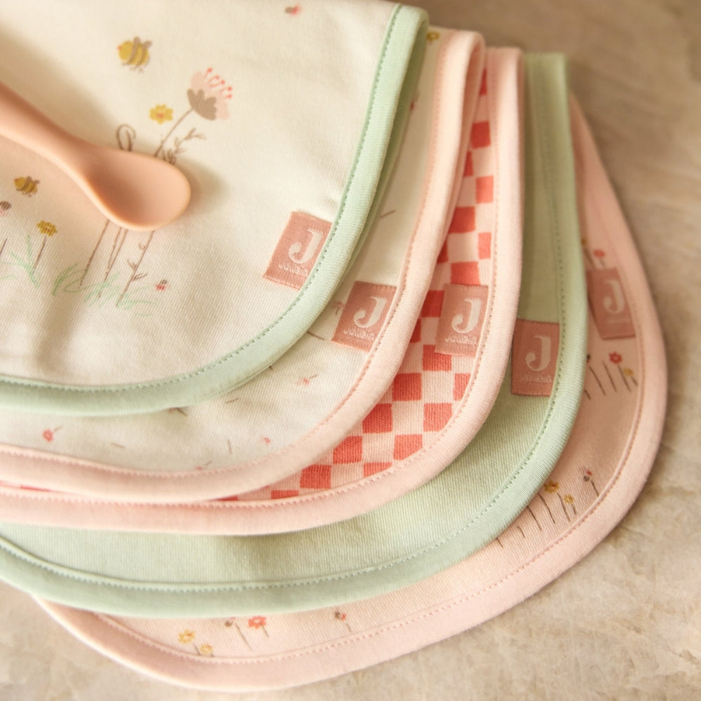 Jollein zīdaiņu krūšturi praktiskajā 5 komplektiņā ir neaizstājams palīgs ēšanas laikā.