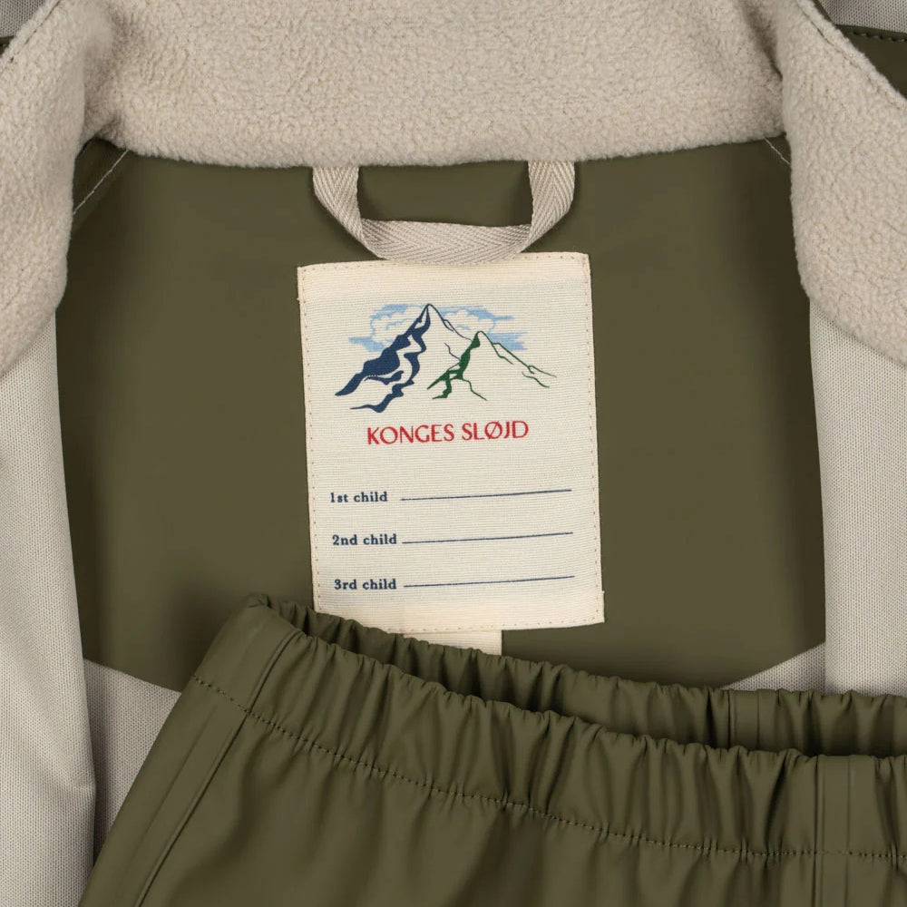 Konges slojd bērnu lietus jaka un bikses Burnt Olive.