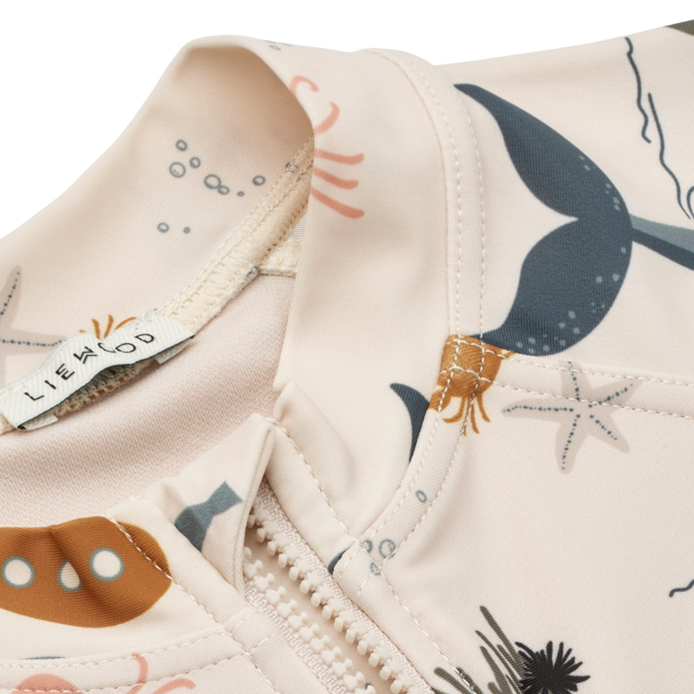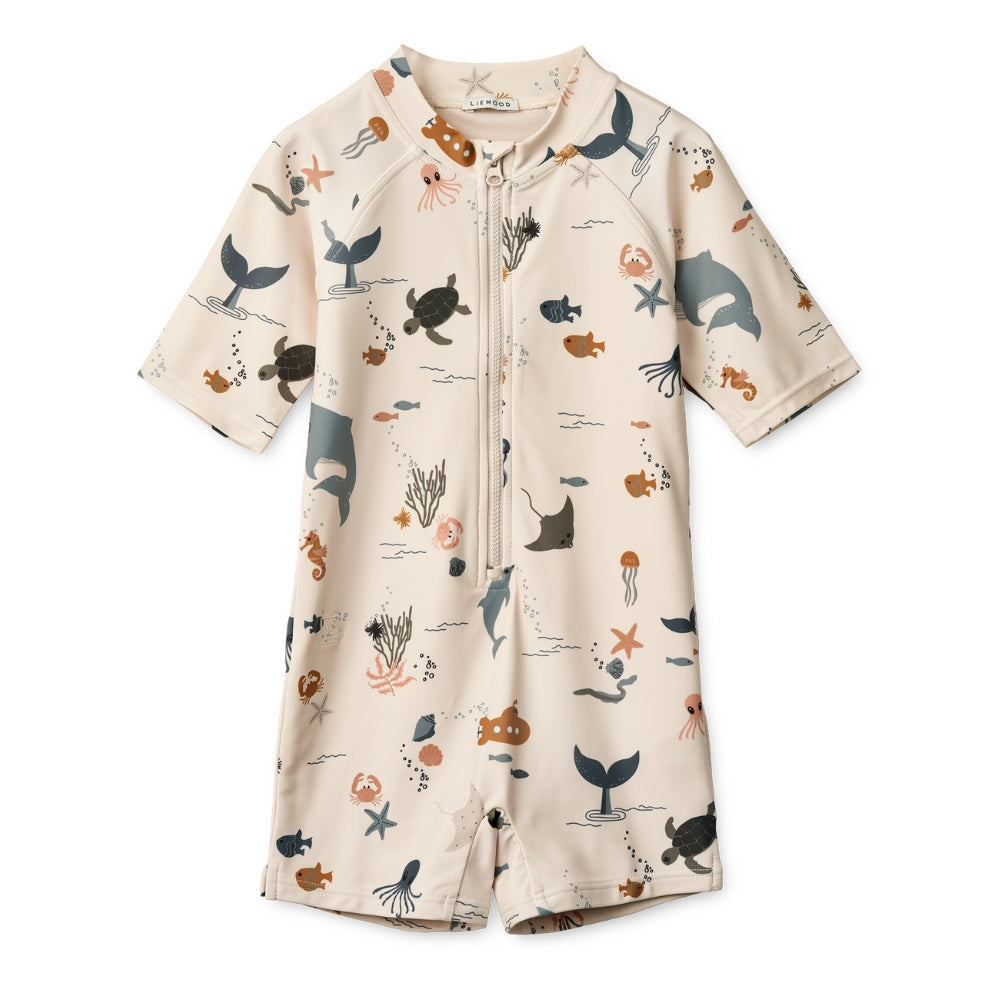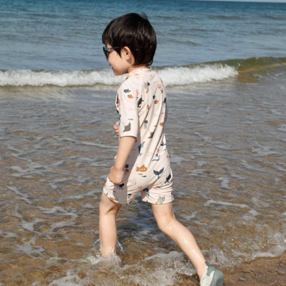 Liewood zēnu viengabala peldkostīms ar īsām piedurknēm Max Sea creature / Sandy