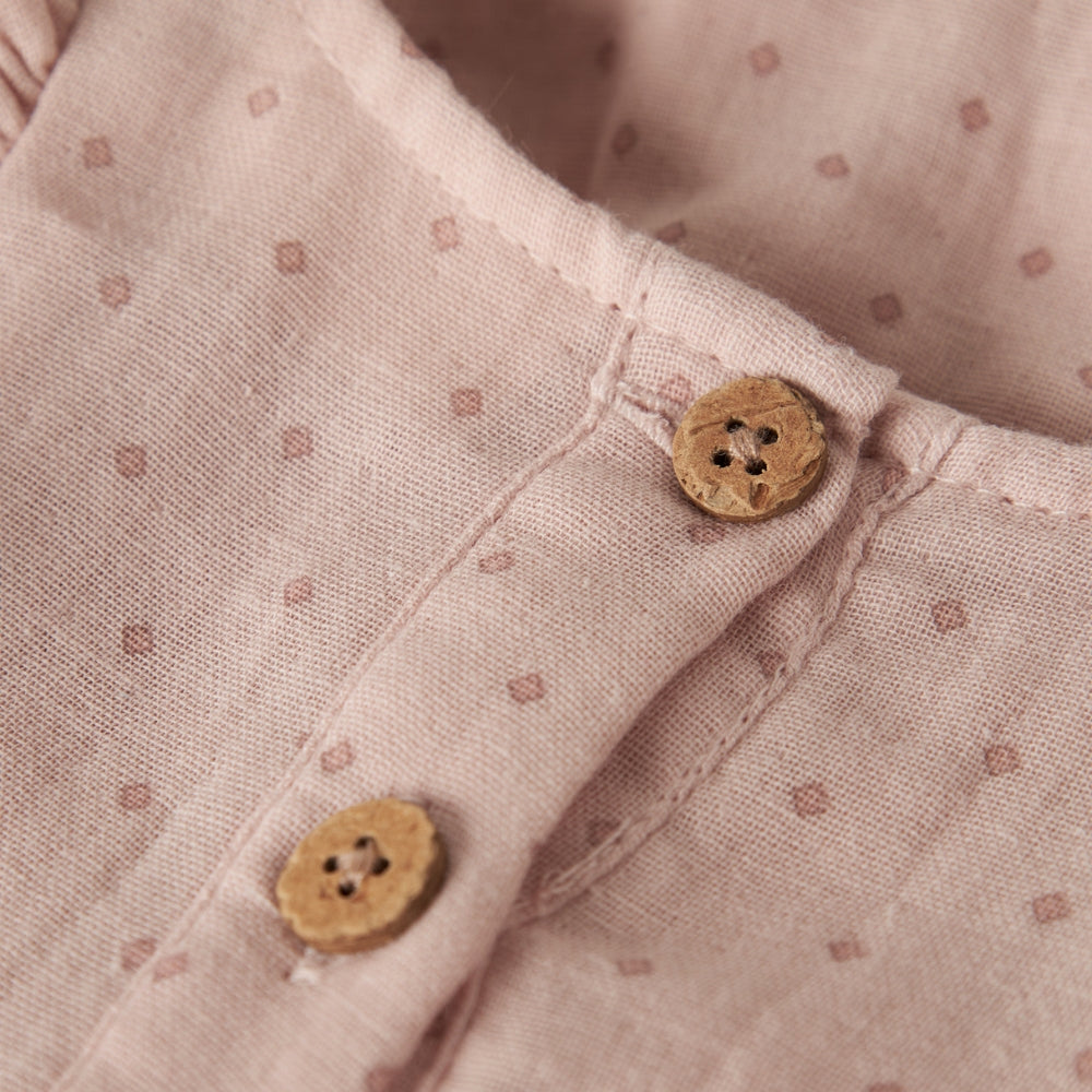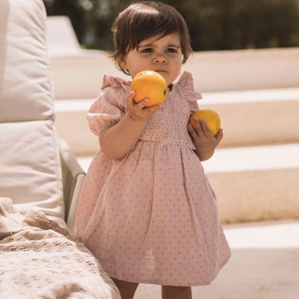 Lil' Atelier zīdaiņu kleita ir draudzīga bērna jutīgajai ādai, nodrošinot komfortu visas dienas garumā.
