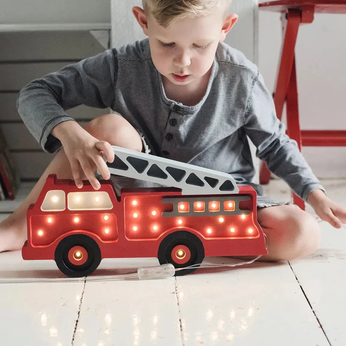 Ugunsdzēsēju formas Little Lights lampa ir ideāls papildinājums bērna istabai, radot burvīgu atmosfēru rotaļu laikā un vakara lasīšanas stundās.