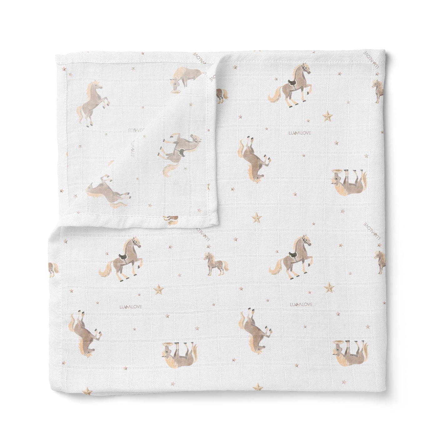 Lullalove Viegla muslīna gultas pārklājs 150x200 cm Zirgi