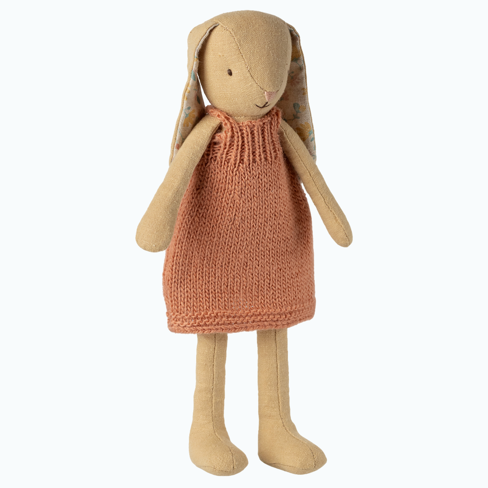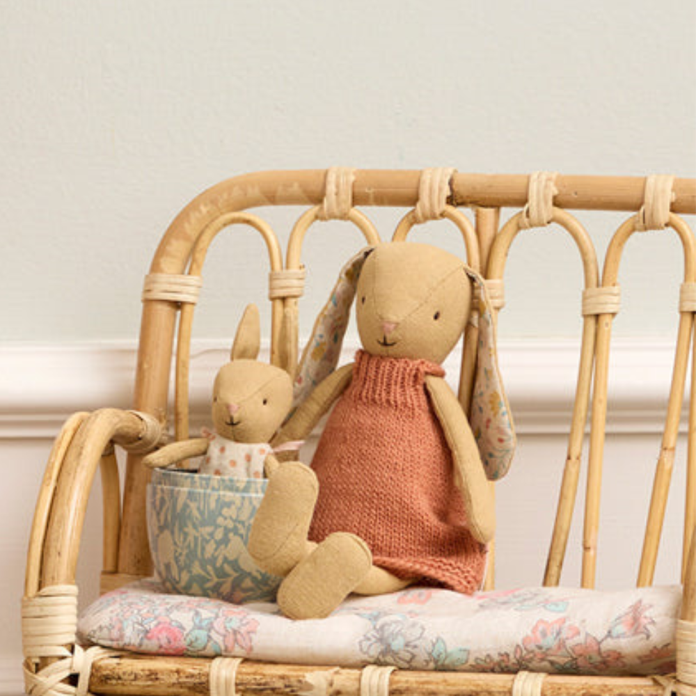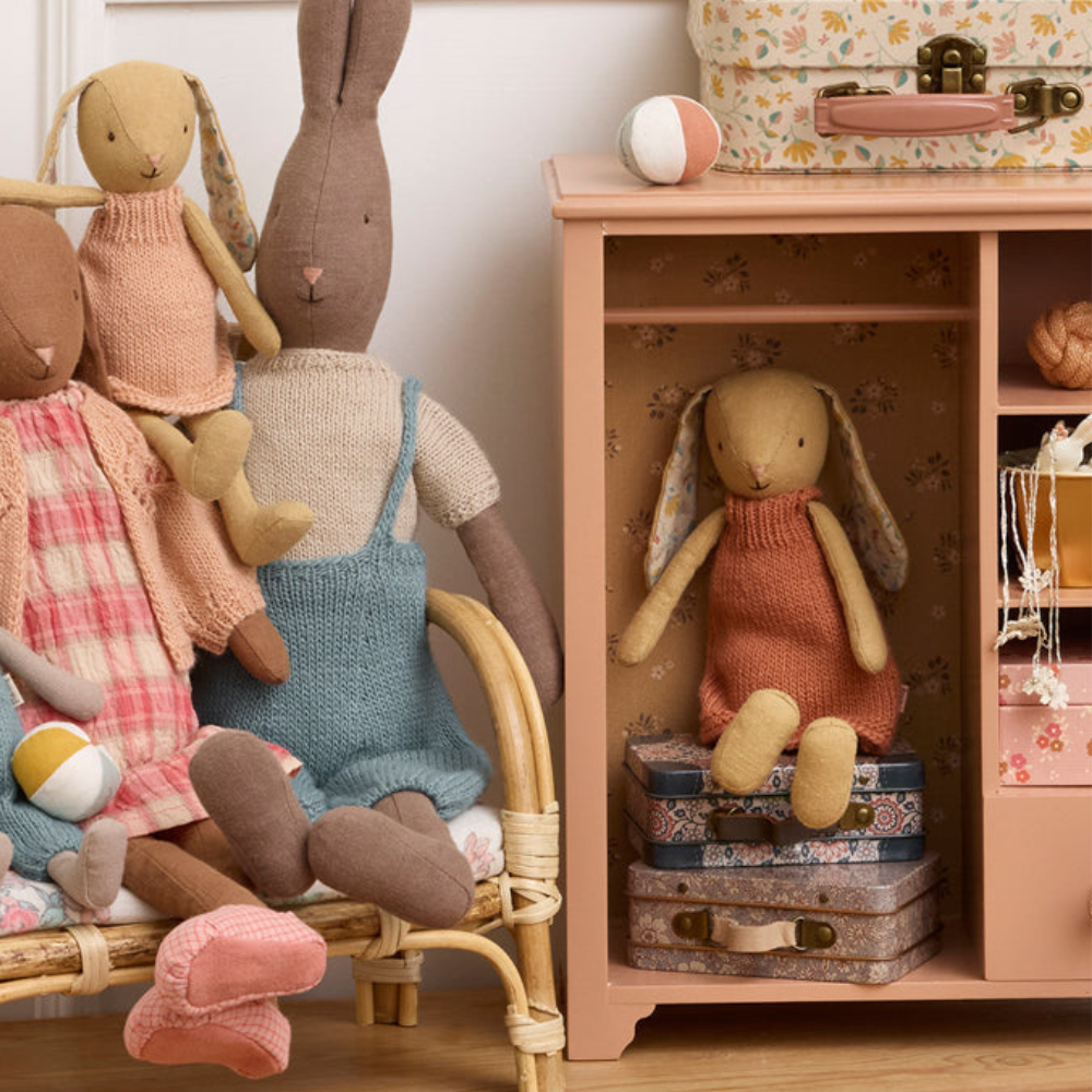 Rotaļlieta, kas aug kopā ar jūsu bērnu: zaķis kleitiņā rosina rotaļāties ar mīlestību, spēlēt lomas un izdomāt savus stāstus, un mūžīgais Maileg stils lieliski sader ar jūsu istabas interjeru.