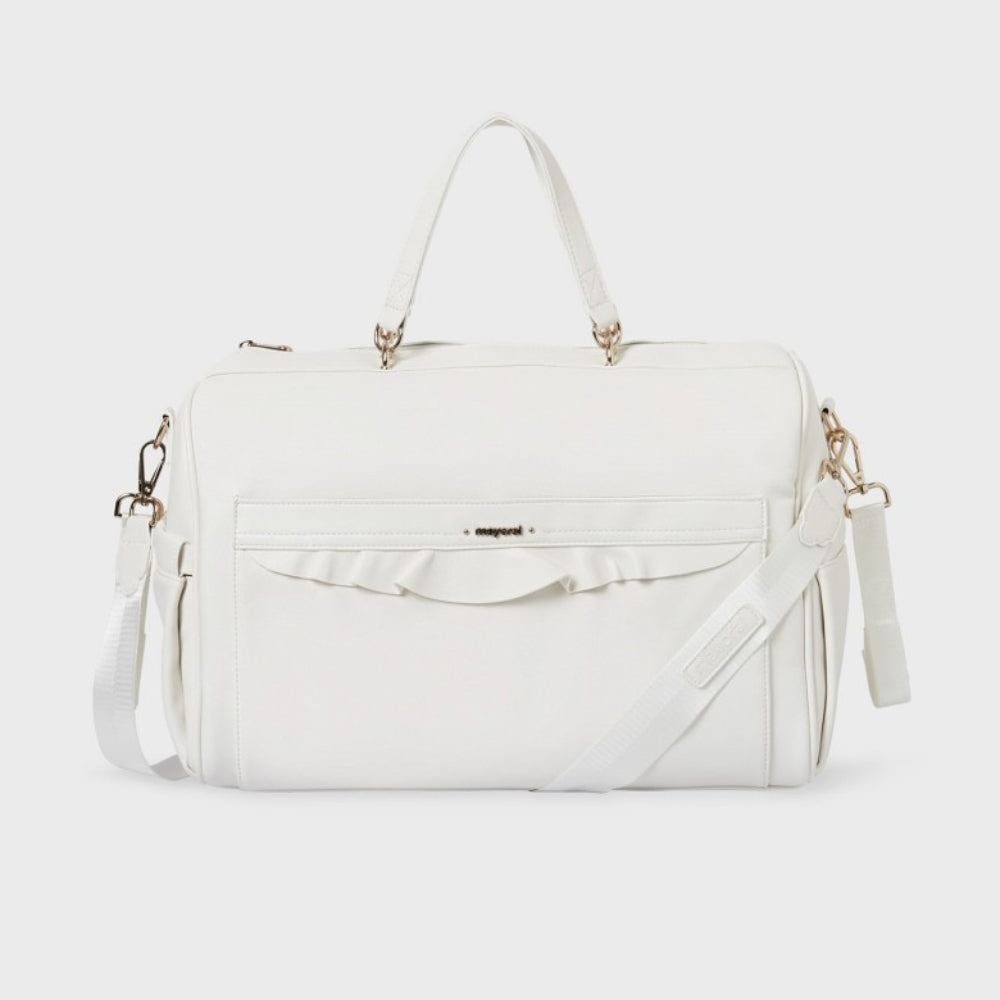 Krēmkrāsas soma no Mayoral ir ideāla dāvana bērna sagaidīšanas svinībām.