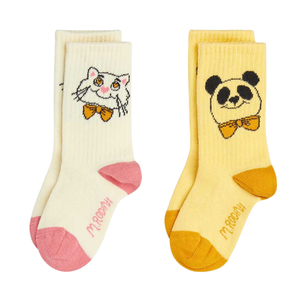 Mini Rodini Kaķis un panda bērnu zeķes, 2 pāri