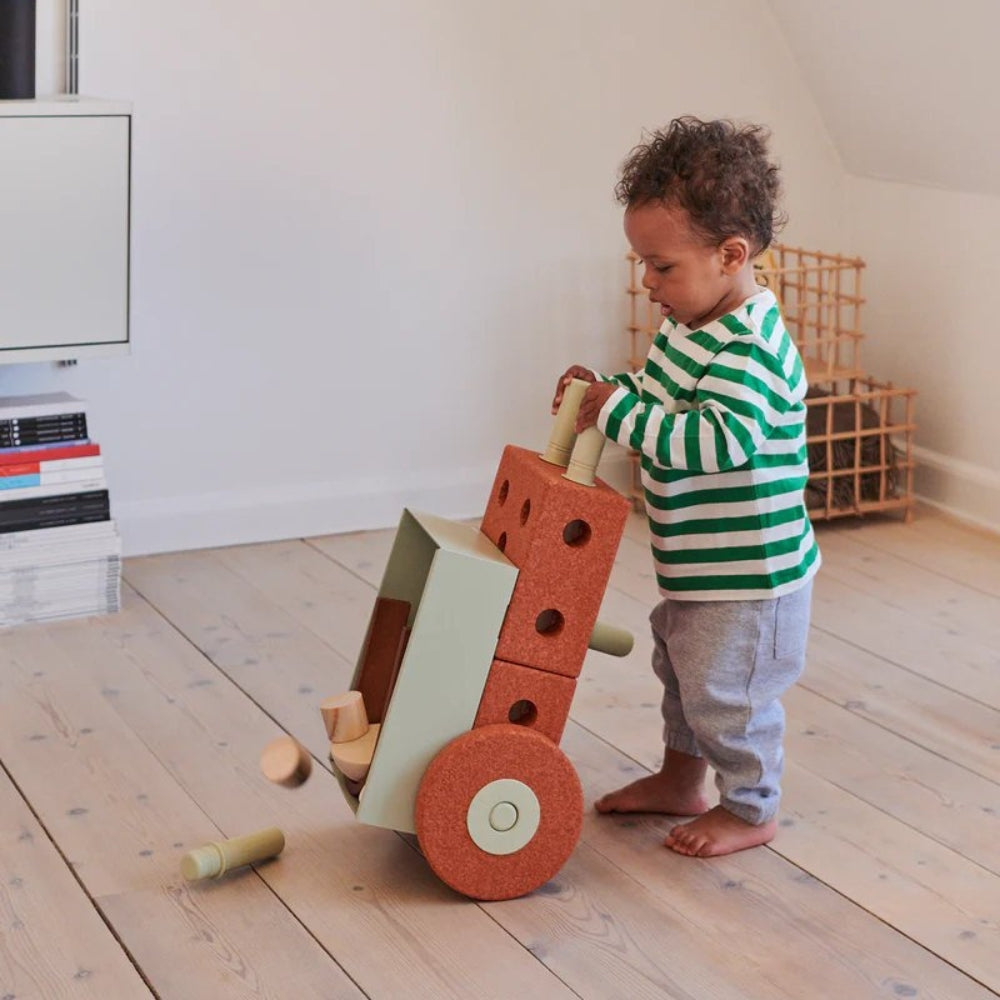 Kad bērns aug, ratiņus var pielāgot, pievienojot vairāk klucīšu, vai izmantot kā daļu no MODU komplekta, lai kopā būvētu un spēlētos.