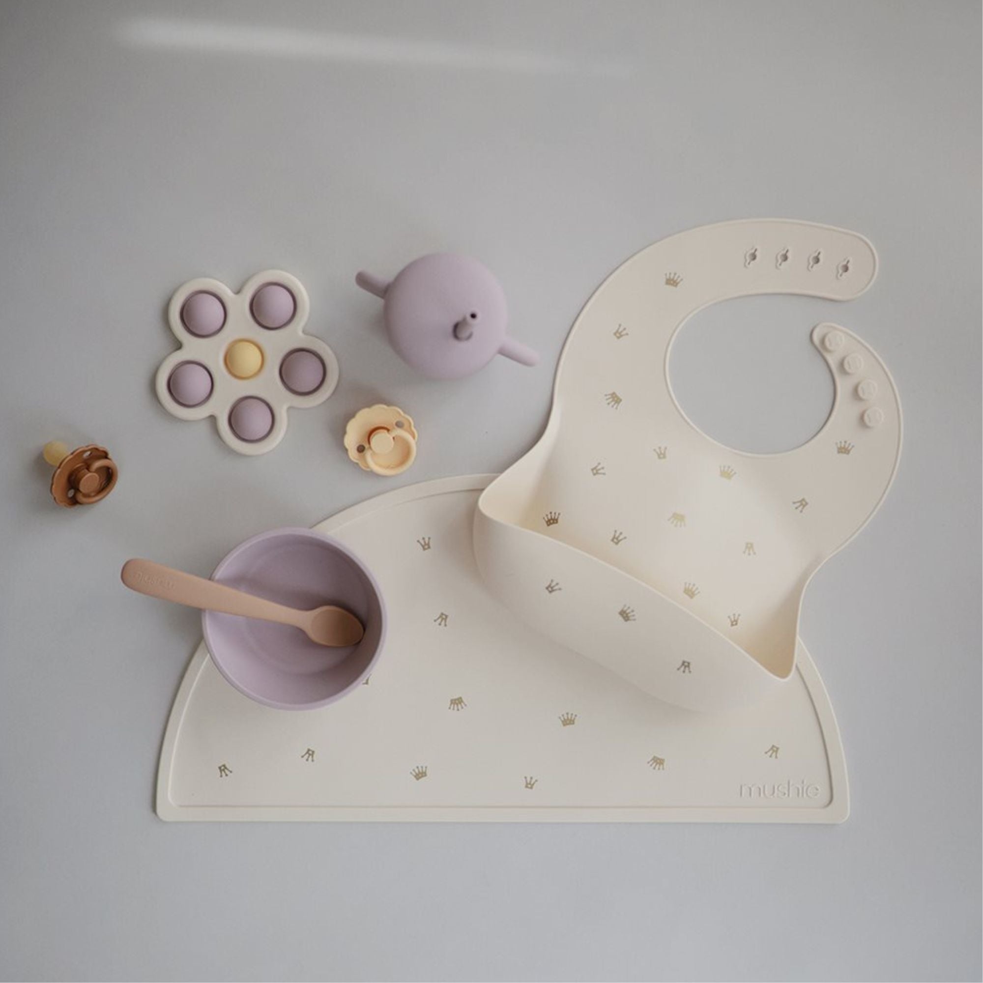 Silikona galda pārsegs zīdaiņiem Mushie ir neaizstājams jūsu mazuļa pirmajām patstāvīgajām maltītēm.