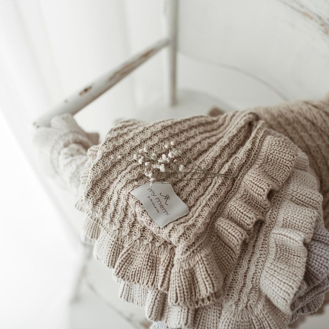 Jaukā un ļoti stilīgā bambusa bērnu sega ar volāniem, krāsā smilškrāsā Memi.