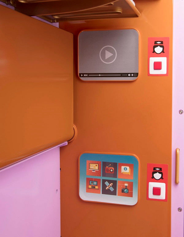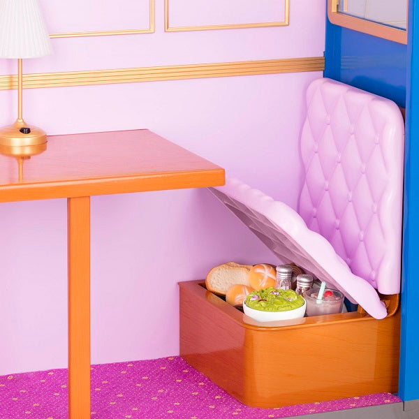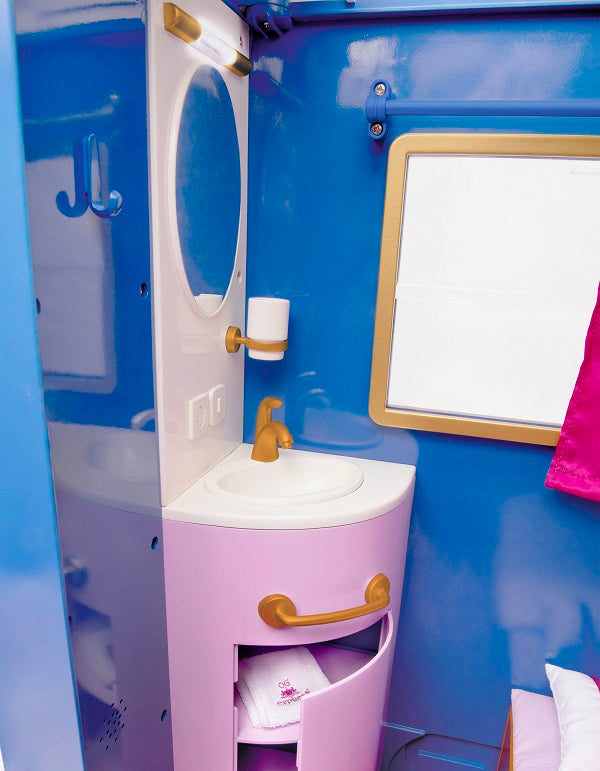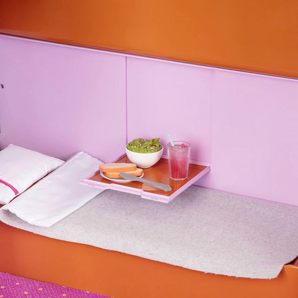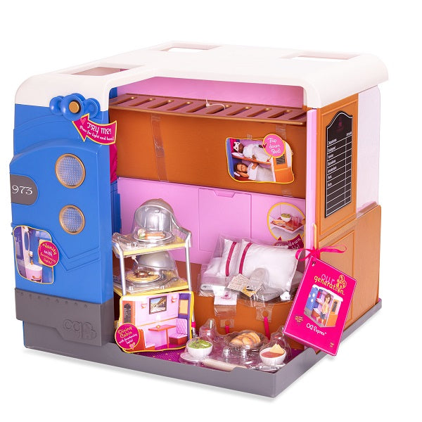 Viena vagona pusē ir guļamvieta ar izlietni un vietu divām lellēm, bet otrā pusē ir ēdamistaba ar galdu un gudriem aksesuāru glabāšanas nodalījumiem.