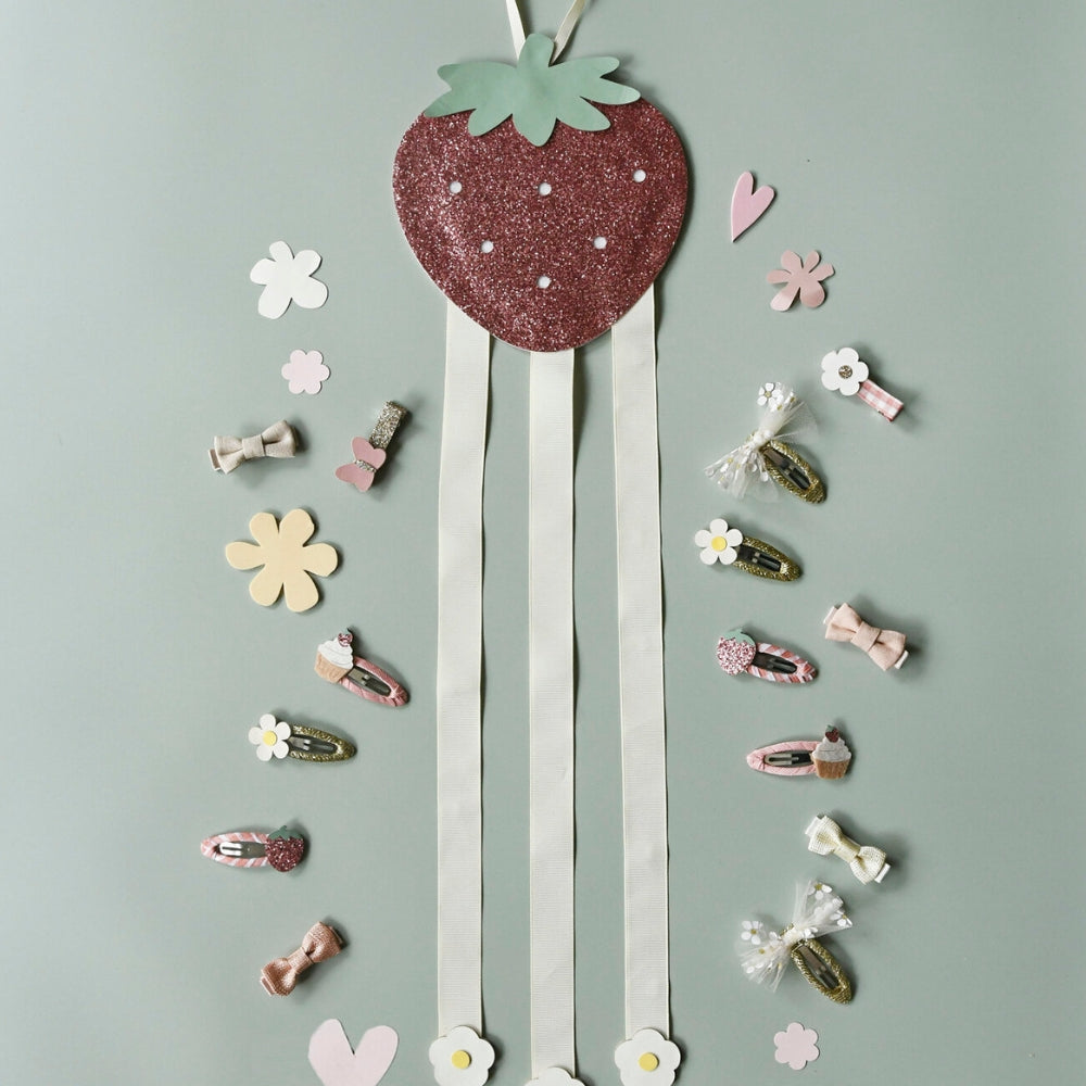 Rockahula Sweet Strawberry 3 Ribbon Hairpin Hanger ir ideāls risinājums, lai uzglabātu un sakārtotu savus iecienītākos matu aksesuārus.
