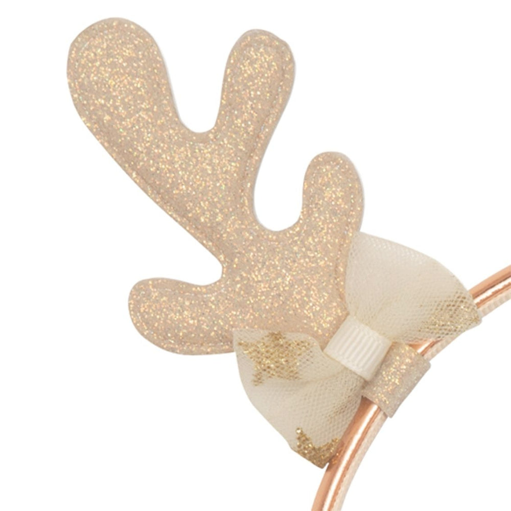 Izstrādāta zelta krāsā ar mīkstiem ziemeļbriežu ragiem, kas rotāti ar mirdzošām pērlītēm, tā skaisti akcentē bērnišķīgo šarmu un ir ideāli piemērota Ziemassvētkiem vai ziemas ballītēm.