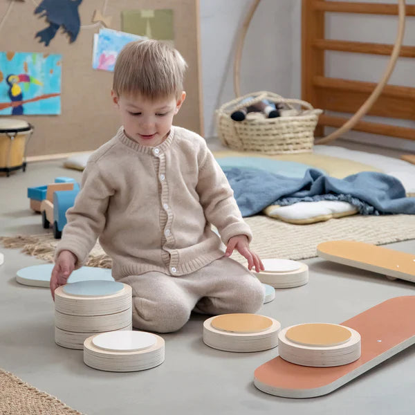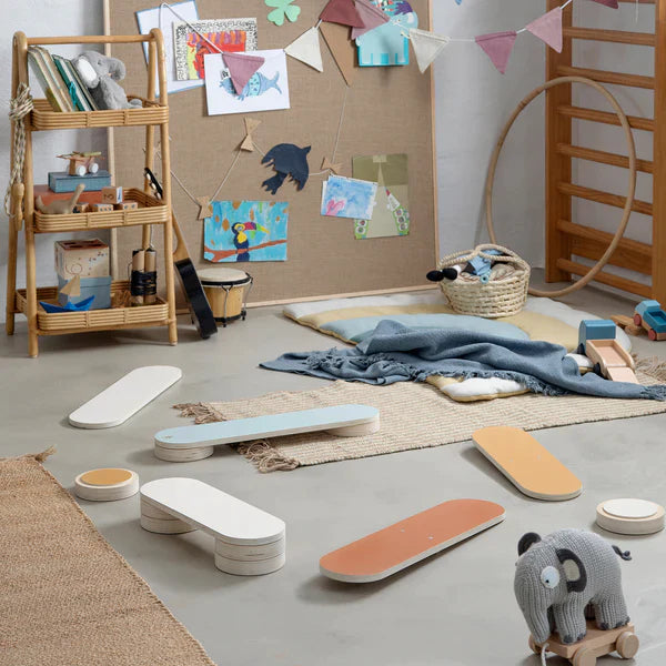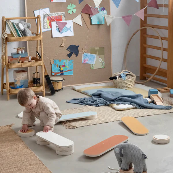 Bērni var stundām ilgi kombinēt dažādus elementus, veidojot aizraujošas līdzsvara vai šķēršļu trases.