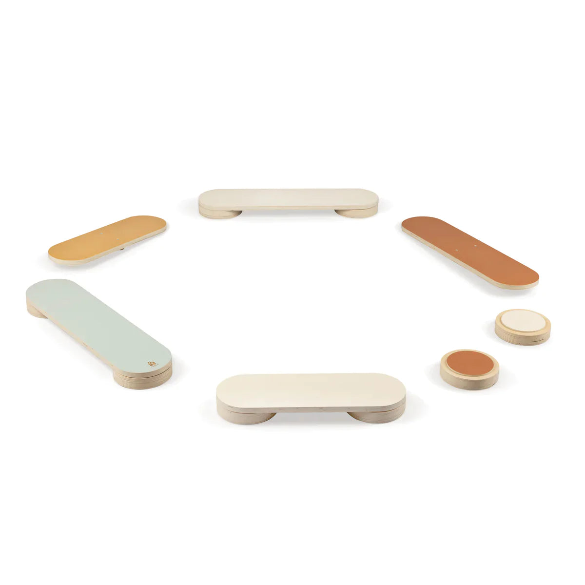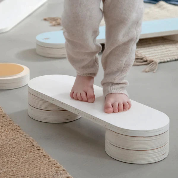 Līdzsvara akmeņus var novietot uz grīdas atsevišķi vai salikt zem līdzsvara dēļiem, lai palielinātu trases augstumu. Divus dēļus var noliekt, padarot spēli vēl izaicinošāku.
