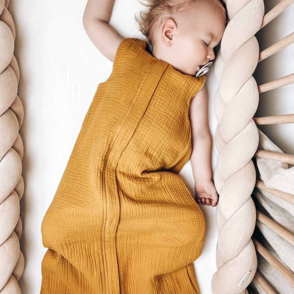 Šis guļammaiss ir izgatavots no augstas kvalitātes mīksta muslīna, kas ir maigs pret bērna ādu un nodrošina lielisku gaisa cirkulāciju.