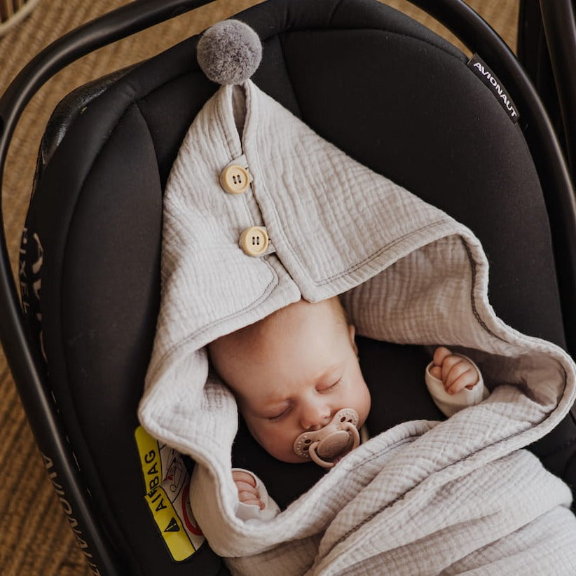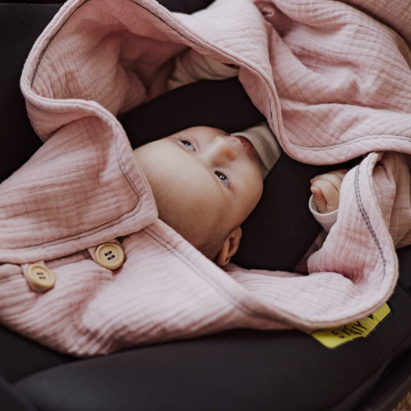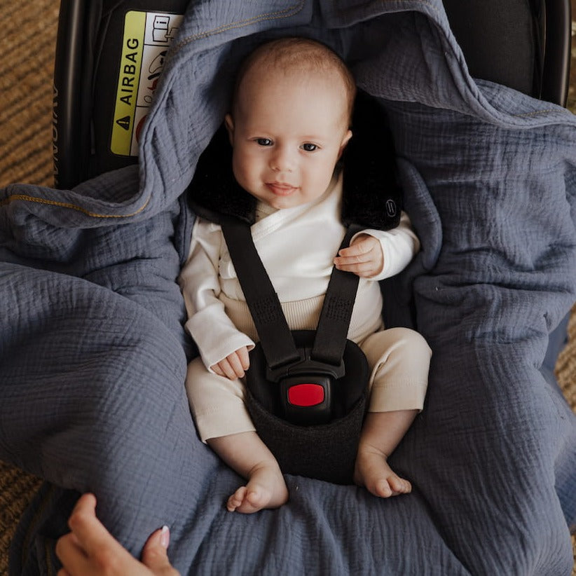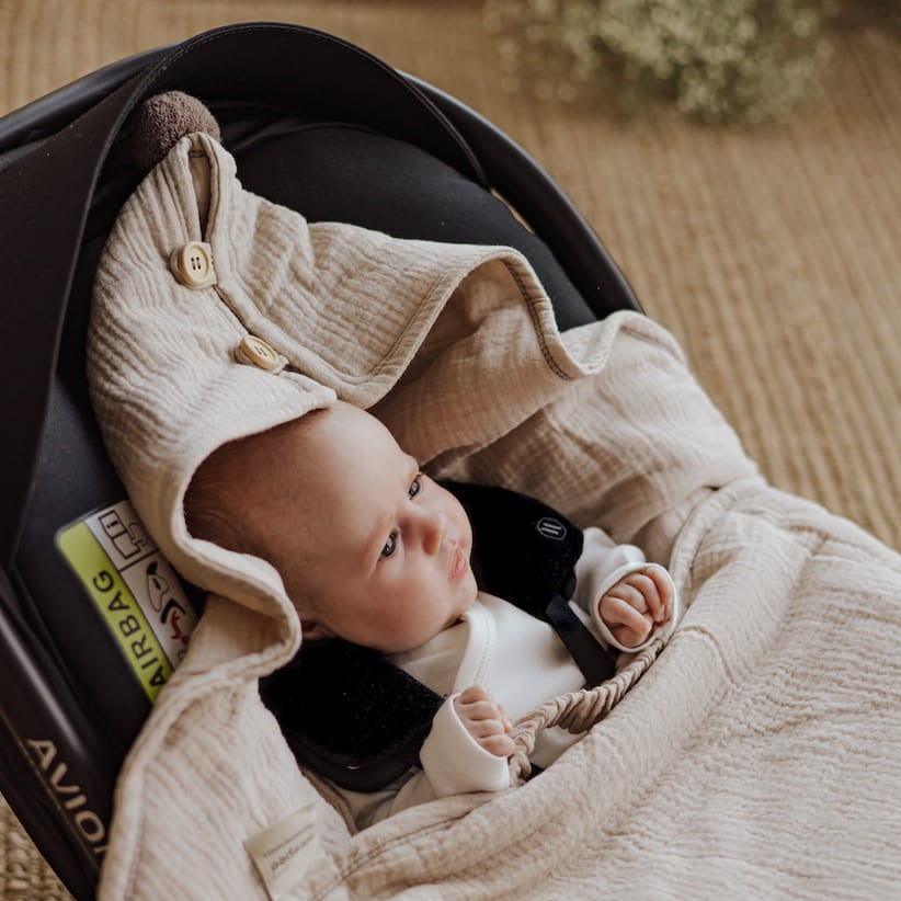 Vienkārši novietojiet segumu automašīnas sēdeklī, un jūsu mazulis būs drošībā un pasargāts no iespējamā aukstuma.