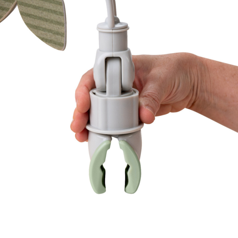 Pateicoties universālajam klipam, galvas siksniņu ar piekariņiem ir viegli piestiprināt, un elastīgais dizains ļauj rotaļlietas novietot tā, lai tās atrastos tieši bērna redzeslaukā.