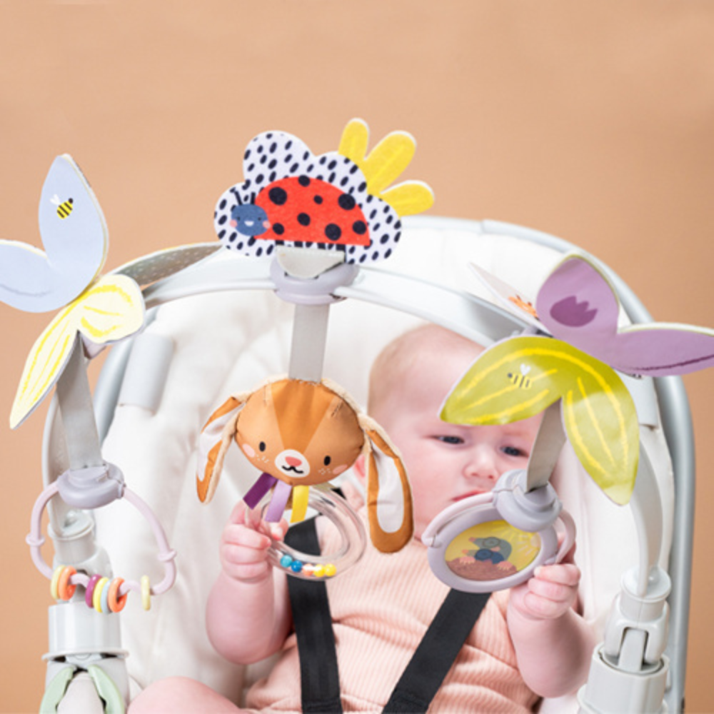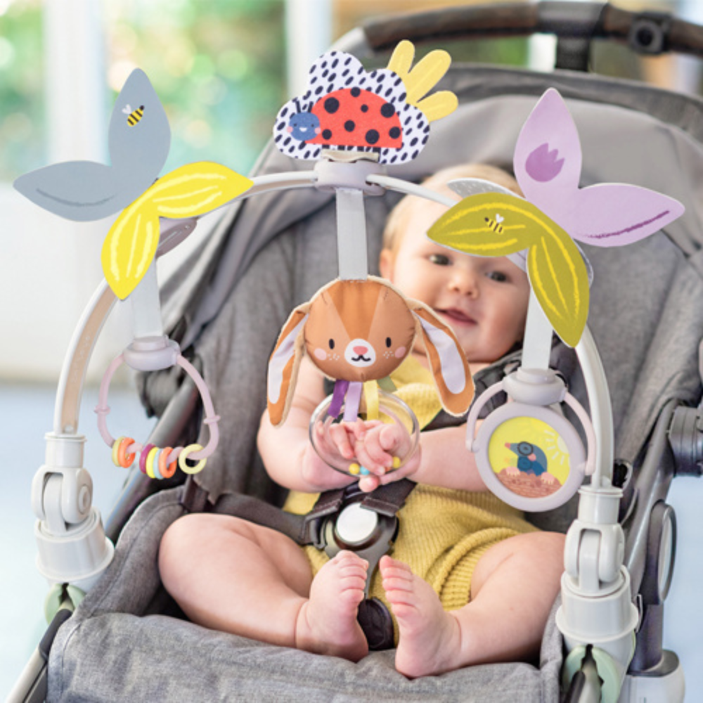 Taf Toys "Hanging Stick" ir gudrs risinājums, lai padarītu mazuļa ikdienas pastaigas patīkamākas un vienlaikus atbalstītu viņa attīstību jau no pirmajām nedēļām.