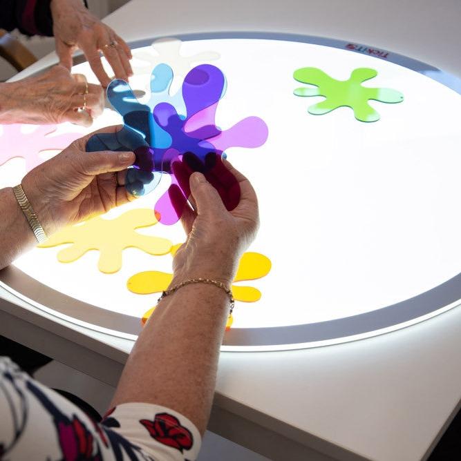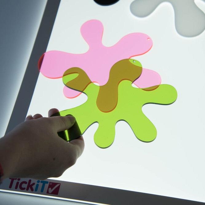 Tās ir ideāli piemērotas spēlēm ar gaismas kasti, kur bērni var eksperimentēt ar krāsu sajaukšanu, saskaņošanu, gaismas novērošanu un ēnu veidošanu.
