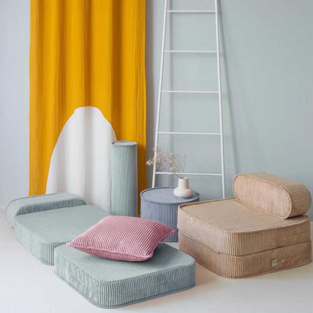Wigiwama bērnu krēsls Peppermint Green Flip no velveta ir stilīgs un praktisks papildinājums jebkurai bērnu istabai.