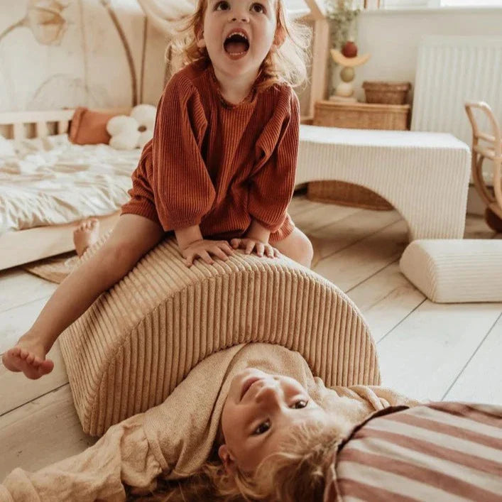Rainbow Playset no Wigiwama sastāv no trim dažādu formu moduļiem, kurus var kombinēt un izmantot dažādos veidos.